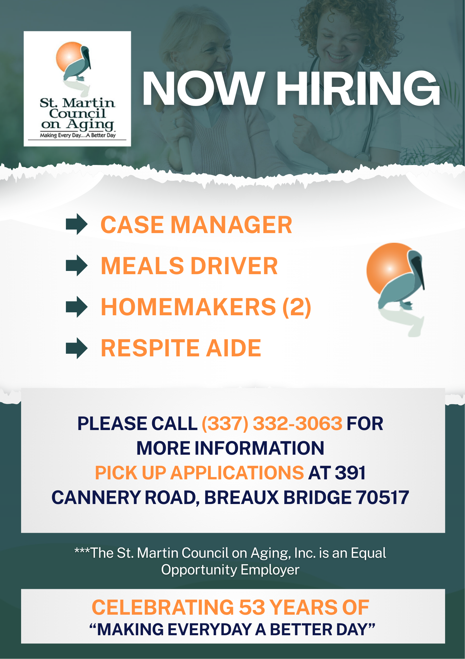 Many, many thanks in advance for your abundant generosity and for #MakingEverydayABetterDay for the seniors of St. Martin Parish!